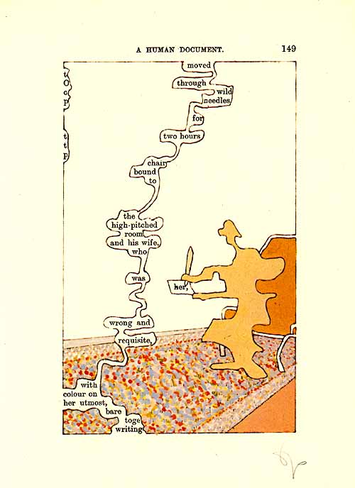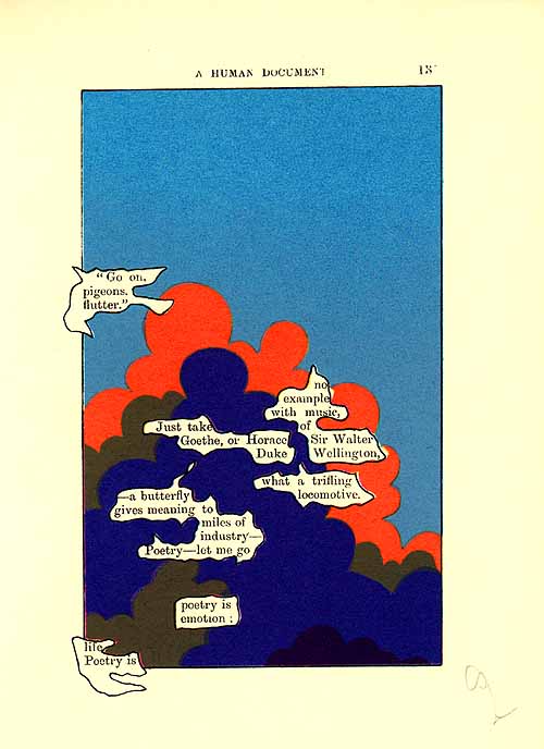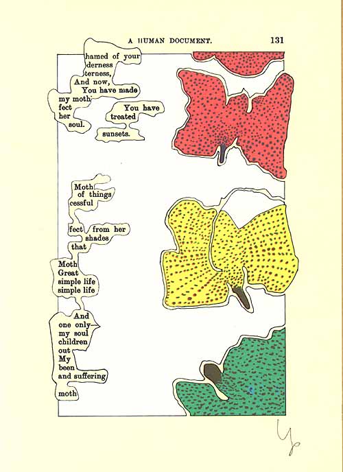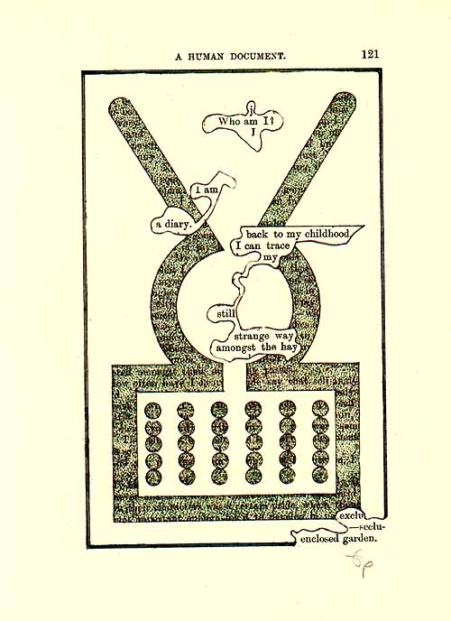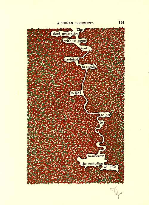 The artist plays Pygmalion with W.H. Mallock's A Human Document (1892). These pages from the first printed edition, London: Tetrad Press, 1970[-75]. See also: Pages 1-30 See also: Pages 31-60 See also: Pages 61-90 See also: Pages 91-120 These are: Pages 121-50 See also: Pages 151-180 See also: Pages 181-210 See also: Pages 211-240 See also: Pages 241-270 See also: Pages 271-300 See also: Pages 301-330 See also: Pages 331-360 See also: Pages 361-370 See also: www.humument.com |