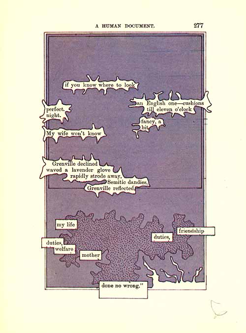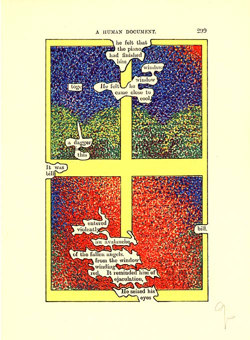 The artist plays Pygmalion with W.H. Mallock's A Human Document (1892). These pages from the first printed edition, London: Tetrad Press, 1970[-75]. See also: Pages 1-30 See also: Pages 31-60 See also: Pages 61-90 See also: Pages 91-120 See also: Pages 121-150 See also: Pages 151-180 See also: Pages 181-210 See also: Pages 211-240 See also: Pages 241-270 These are: Pages 271-300 See also: Pages 301-330 See also: Pages 331-360 See also: Pages 361-370 See also: www.humument.com |