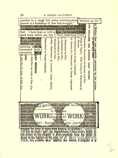 The artist plays Pygmalion with W.H. Mallock's A Human Document (1892). These pages from the first printed edition, London: Tetrad Press, 1970[-75]. These are: Pages 1-30 See also: Pages 31-60 See also: Pages 61-90 See also: Pages 91-120 See also: Pages 121-150 See also: Pages 151-180 See also: Pages 181-210 See also: Pages 211-240 See also: Pages 241-270 See also: Pages 271-300 See also: Pages 301-330 See also: Pages 331-360 See also: Pages 361-370 See also: www.humument.com |